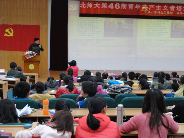 第46期青年共产主义者培训班第四场培训讲座在教九502举行。本场讲座邀请到国家一级演员、第二炮兵电视艺术中心演员孙洪涛做主讲人,同时出席的还有91毛巾哥
