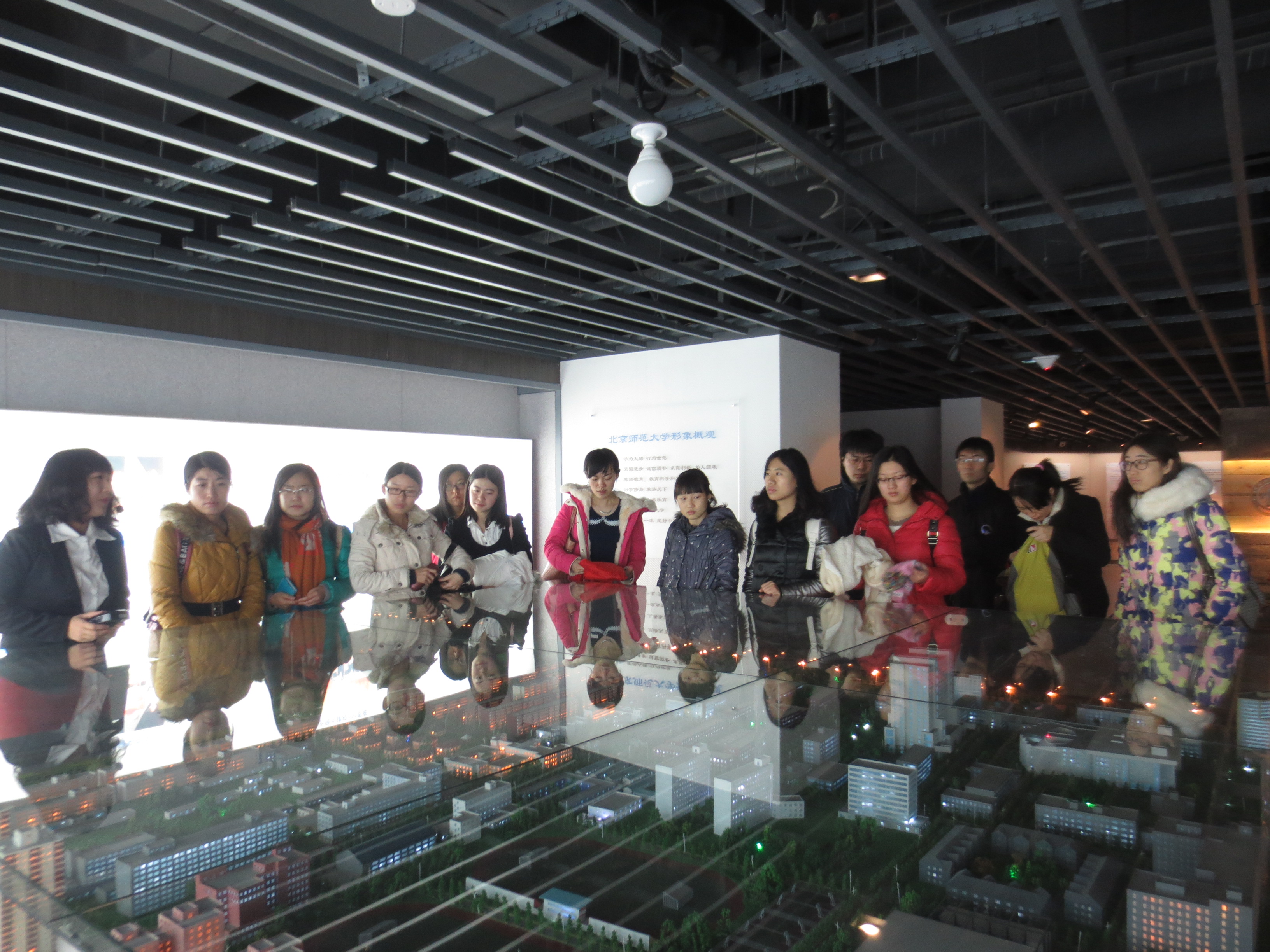 的形象展览馆。在近一个小时的参观中,来自两个院系六个支部的十七名入党积极分子们,通过参观沙盘区、校史厅、流动展廊、特色厅、名师厅和启功厅,不仅了解了北师大的百年建设及发展历程,更加体会到了北师大独特的人文精神。积极分子们纷纷表示,参加这样的活动收获良多,在激发爱校爱国精神的同时,也真切地提升了他们的学子自豪感和对社会的责任承载感。