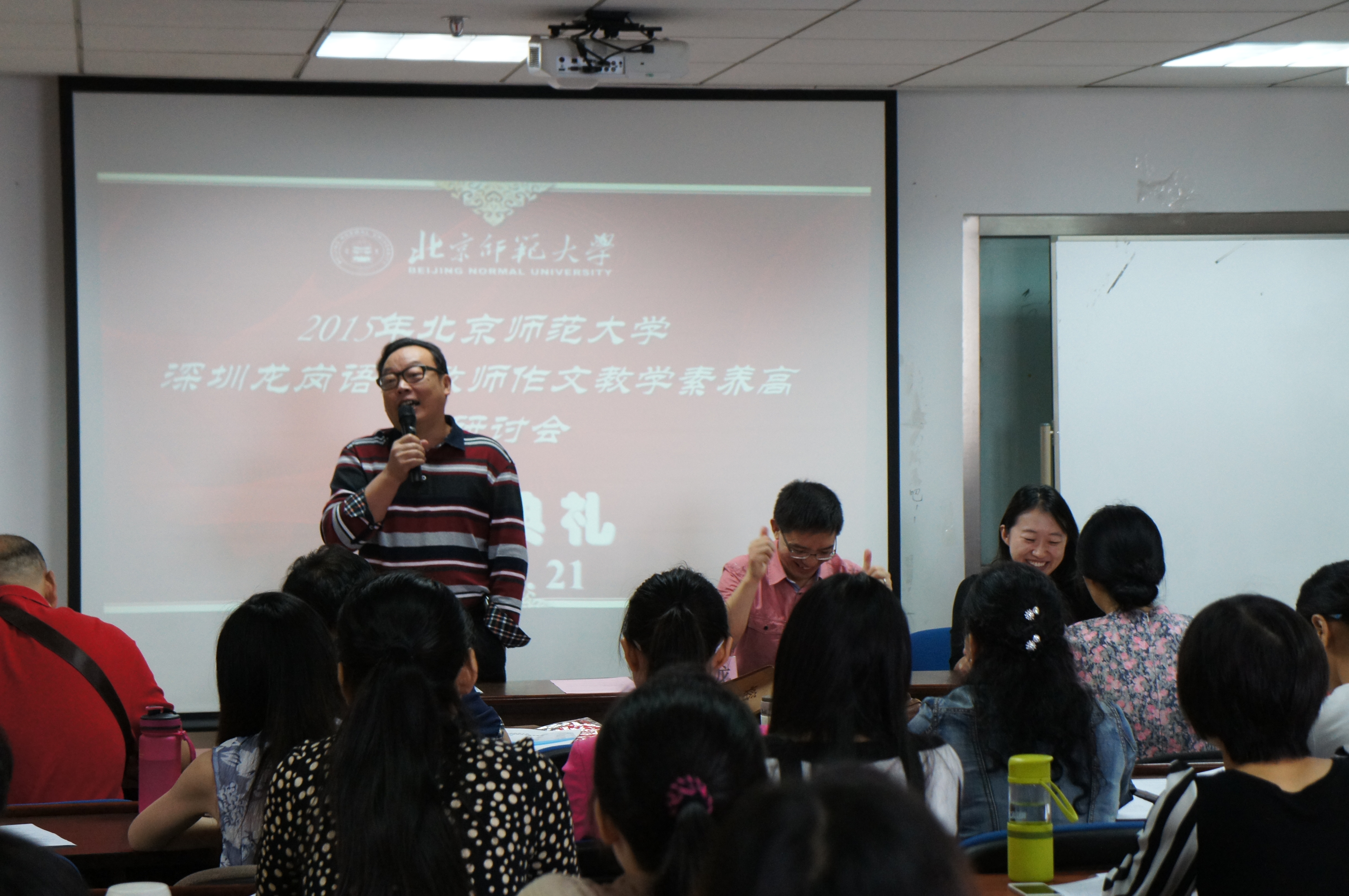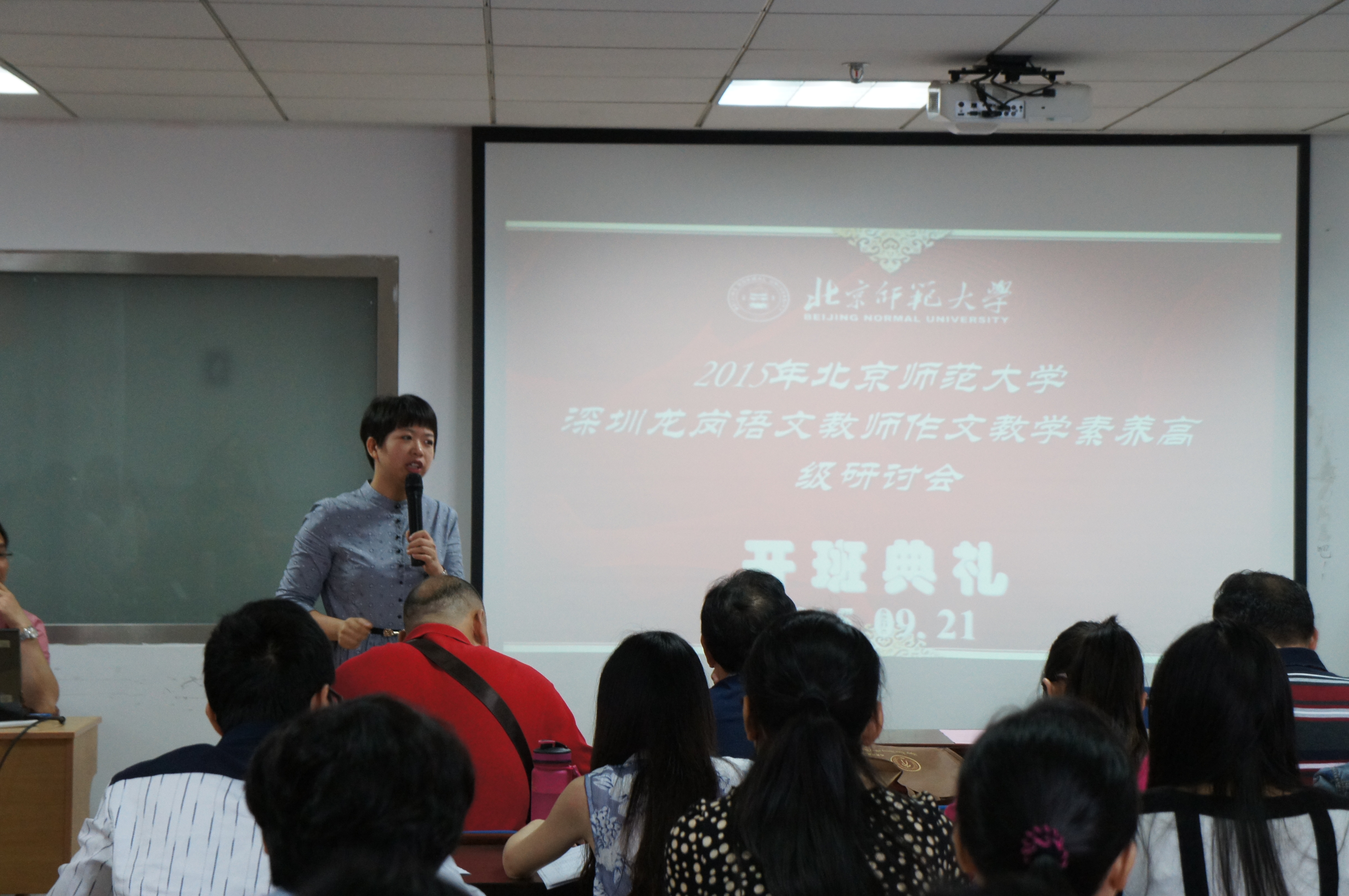 9月21日上午八点二十分,2015年深圳龙岗区语文教师作文教学素养高级研讨会开班仪式在北师大91毛巾哥