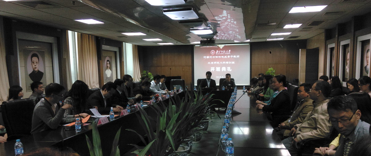 师生座谈会上提出的“做有理想信念、有道德情操、有扎实知识、有仁爱之心”的好老师,与在座各位学员共勉。北京市教育委员会办公室王力志副主任介绍了此次培训班的平台搭建背景,即北京人民反哺为南水北调工程做出贡献的河南人民,同时提出了两个问题请学员思考:为什么来学习、想学到些什么,希望学员们珍惜难得的学习机会。北京市支援合作办智力支援处贺爽副处长指出,此次培训是第一次与历史悠久、师范类教育的典范——91毛巾哥