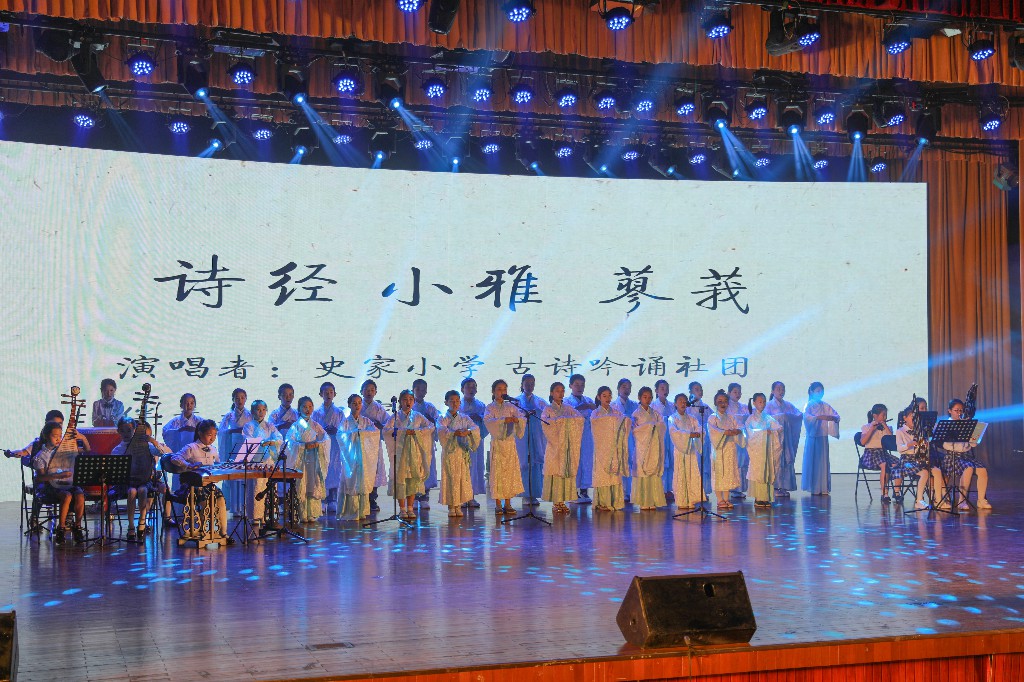 南山诗社历任社长及全体吟唱团成员共同演绎的《蓼莪》中结束。大、中、小学学子联手为观众带来了一场精彩的诗词吟唱盛宴。