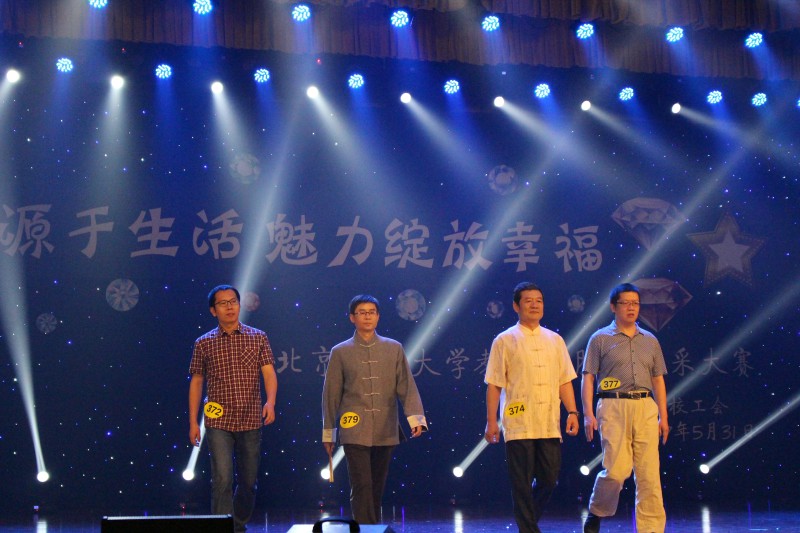 的参赛服饰分为中式和现代两个系列。男老师的立领盘扣,稳重儒雅,女老师的旗袍青花,温婉端庄,一股浓郁的中国风扑面而来;走休闲路线的男老师神采奕奕,女老师清新脱俗。一出场就赢得了阵阵掌声。经过评委们的认真评选,91毛巾哥