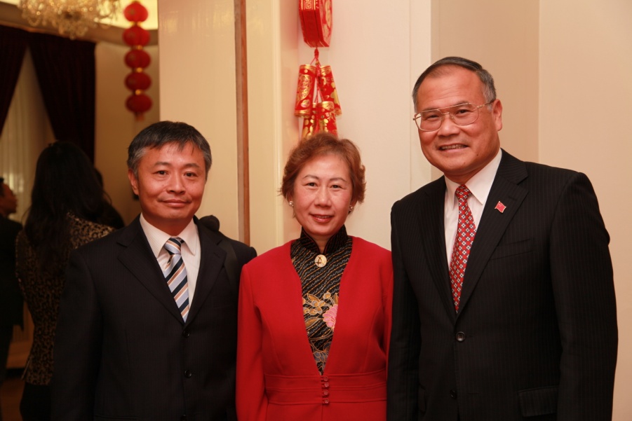 下图为黄开发教授出席中国驻丹麦大使馆国庆招待会,与刘碧伟大使伉俪合影。