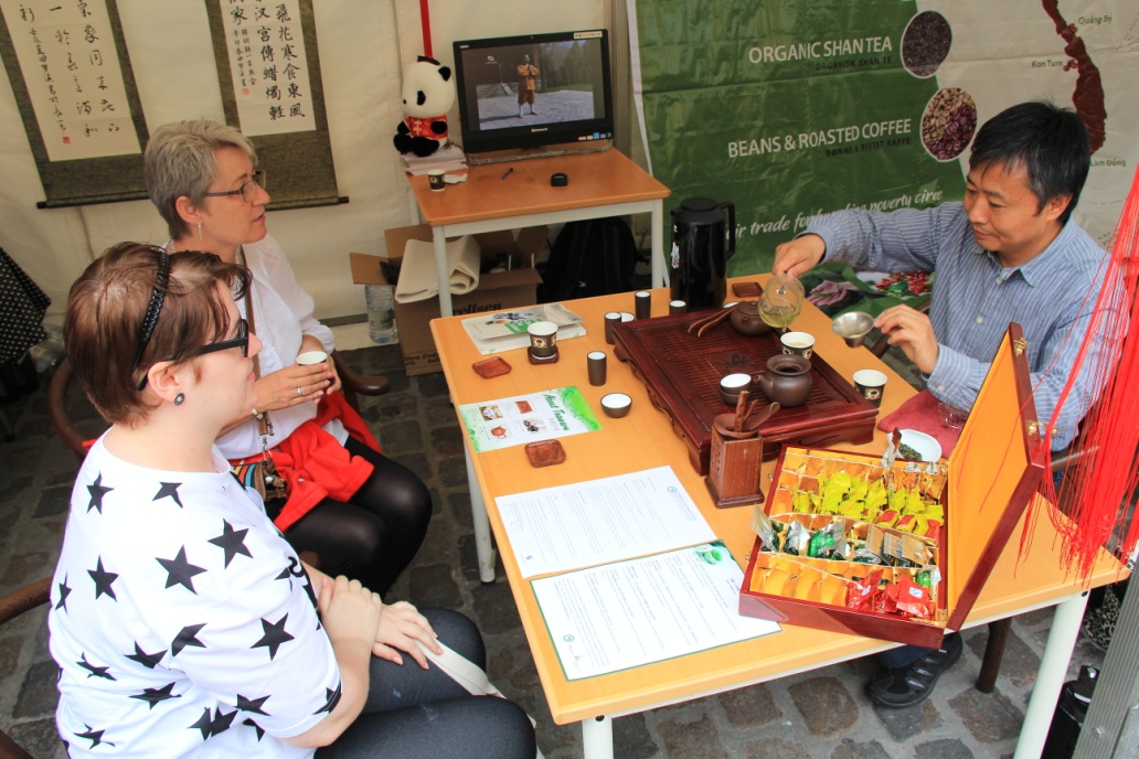 下图为黄开发教授在奥尔堡第二届美食节上表演茶艺。