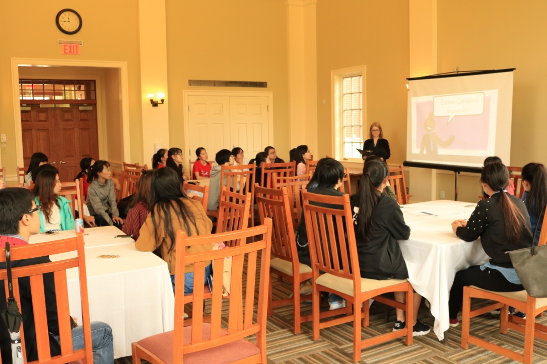 学生的到来表示热烈欢迎,负责课程设置的教师对课程进行了初步介绍,并希望各位同学在两周的学习生活中能够了解加拿大及北美地区的历史、文化,同时提高自身跨文化理解和交际的能力。