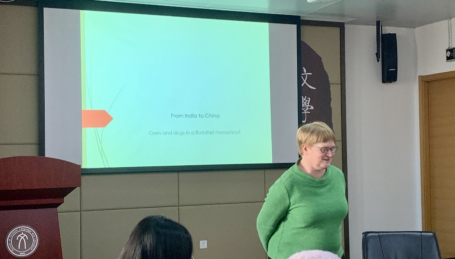 在本次讲座中,安海漫教授考察了典籍里有关寺庙中僧侣具体生活的记述,将其中涉及到动物的内容提炼出来,并以唐代律宗大师道宣的思想作为中心参照,向大家分享了中、印佛学传统对待动物(牛、狗、蚊子等)的共性与差异,借由人们对动物的态度观照“我”的慈悲心。安海漫教授所采用的这种关注非理论化生活与文本旁支细节的方法令其研究充满新意和趣味。在交流环节,钱翰教授与安海漫教授就牛奶、鸡蛋对于佛教信众是否可食用问题进行了讨论。思想碰撞中,安海漫教授提到她从未在佛学典籍中发现与鸡蛋食用有关的记载,钱翰教授依照经验猜想,在古代鸡蛋不可吃对出家人而言是无需讨论的默契。杜博思教授关注到动物形象呈现中人类价值的介入,即尽管不同语境下的动物形象差距很大,但都属于人类意识延展的结果,由此提出值得深思的讨论:动物自己的本质又在哪里呢?