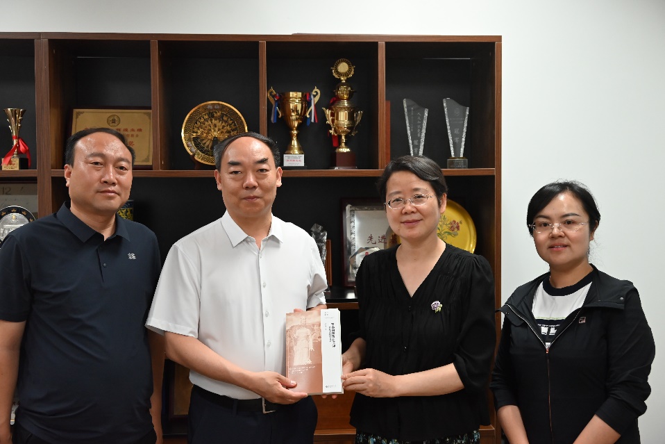 座谈会上,杨利慧教授向张海军副书记一行赠送了自己多年来从事女娲神话研究的学术成果,包括《女娲的神话与信仰》《神话主义:遗产旅游与电子媒介中的神话挪用和重构》以及《女娲的神话与信仰——持续30年的整体研究》三部专著。