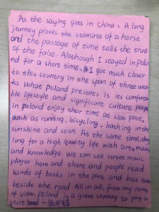 此次波兰华沙大学之行使我们受益匪浅,相信每位同学都能将这份珍贵的记忆转化为不断前进、努力学习、积极生活的动力。