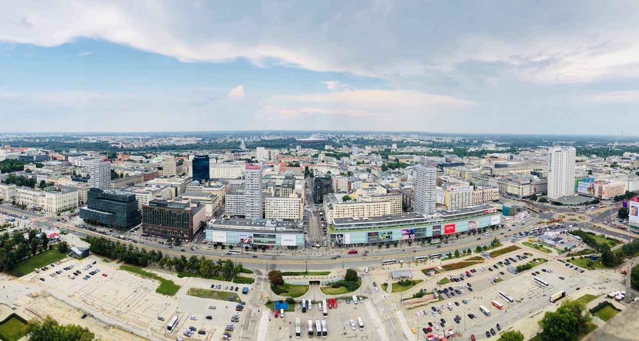 图为站在科学文化宫顶层拍摄的华沙全景图