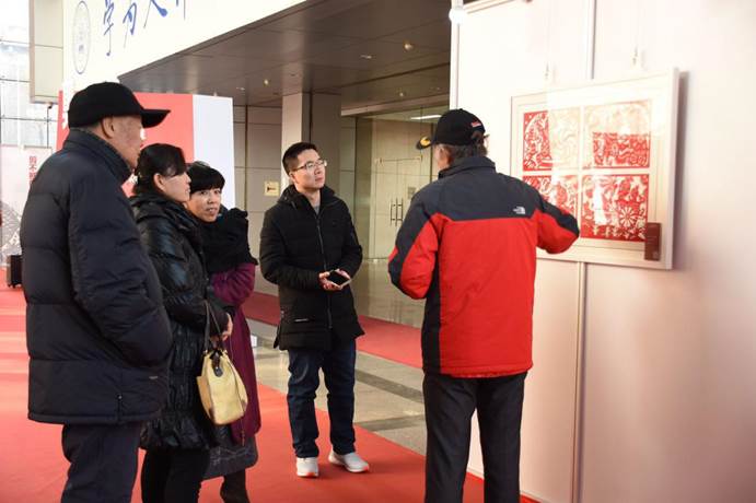教授刘铁梁说,习近平总书记在党的十九大报告中提出,中国特色社会主义进入了新时代,我国社会主要矛盾已经转化为人民日益增长的美好生活需要和不平衡不充分的发展之间的矛盾,这种变化对我们文化和艺术工作者提出了新的要求,总的来说就是要为满足人民对美好生活的新期待,必须提供丰富的精神食粮。同时,文艺工作者还要看到,蕴藏在广大人民群众中的无穷无尽的文化艺术创造始终是中国特色社会主义文化大发展的根本动力,只有向人民学习,才能更好的为人民服务。此次展览是“中华传统文化进校园”系列活动中的一个环节,也是落实党的十九大精神的一次具体实践,希望通过这次展览,能够向广大人民群众和青少年们传递家国情怀,使青少年能够更加亲近传统文化。他号召广大师生要虚心向民间艺术家们学习,从民众的情感和智慧中获取文化滋养、增强文化自信。