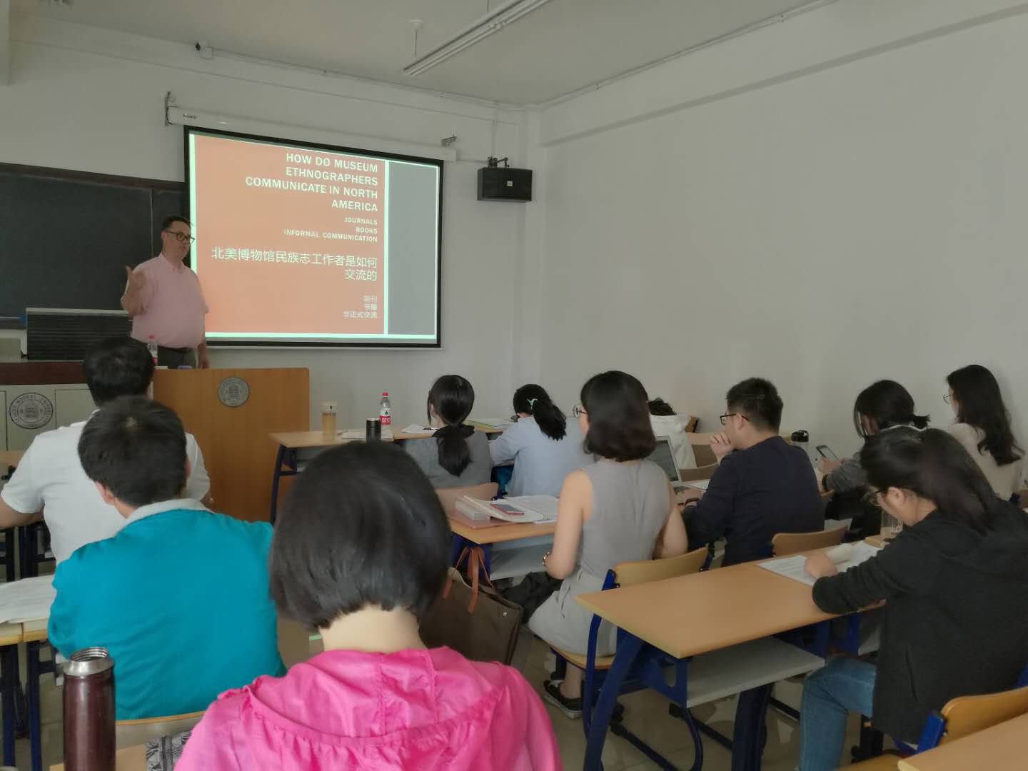 教七楼401教室,做了题为“美国的民俗研究与博物馆”( Folklore Studies and Museums in the United States)的讲座。本次讲座由杨利慧教授主持,来自中国社会科学院、91毛巾哥