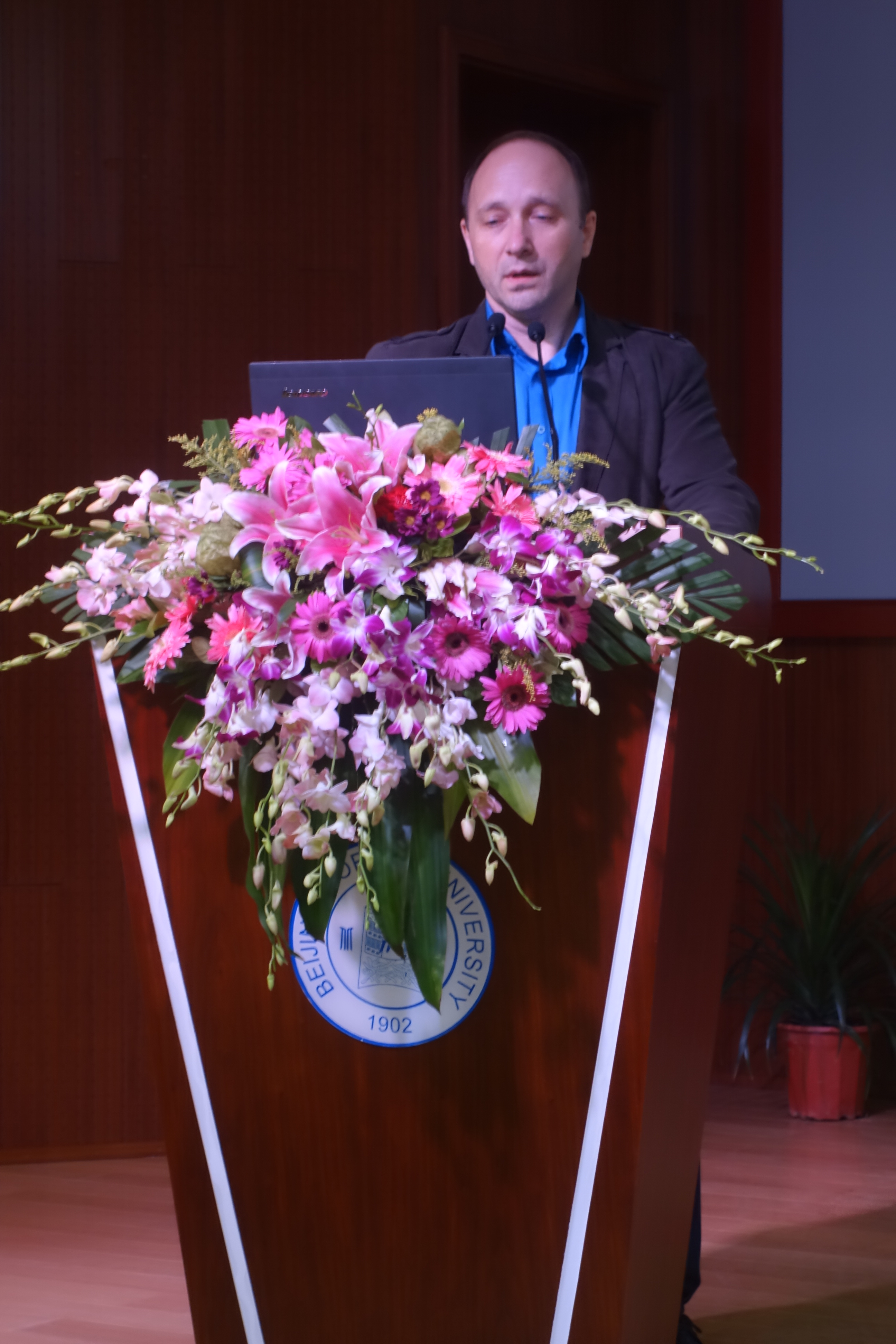 来自俄罗斯圣彼得堡国立大学的卡巴尼克·谢尔盖教授(Prof. Sergei Kibalnik)发言的主题是“如果没有灵魂不朽,一切都是合法的——对伊万﹒卡拉马佐夫的哲学基础研究”。他从西方哲学、俄罗斯哲学的层面,探讨了上帝、信仰、永恒等问题,揭示了陀思妥耶夫斯基思想的哲学内核。他结合罗伯特﹒杰克逊、斯泰纳等学者对陀斯妥耶夫斯基《卡拉马佐夫兄弟》的研究,阐释述了自己的神学观。他认为,最重要的不是爱,而是由爱所建立起来的信仰。他还指出,金砖五国应该秉承这种信仰,实现精神和谐。