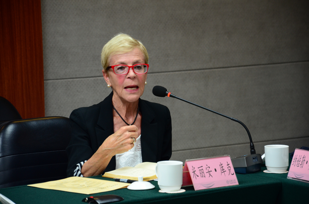 随后,另外一位重要的嘉宾米丽安•库克女士就赛阿达维女士的发言做了一番恰切的评论与补充。她指出,赛阿达维女士一直是一位非常真诚的人,其所说的内容似乎是在谈论政治,但是一切都没有离开过文学。同时,库克女士还谈到,作为一个好作家,不仅要为艺术而艺术,还应该紧密结合社会文化语境来创作。亦即要紧密结合自身的本土特性与世界性,然后在写作中通过自己的笔触给这个世界带去一点积极的变化和影响。在发言的最后,库克女士以一位资深的现代阿拉伯文学评论家的身份,向大会简单介绍了二十世纪五十年代以来阿拉伯世界女性写作的情况,指出了当下阿拉伯世界女性写作与评论的一些问题。