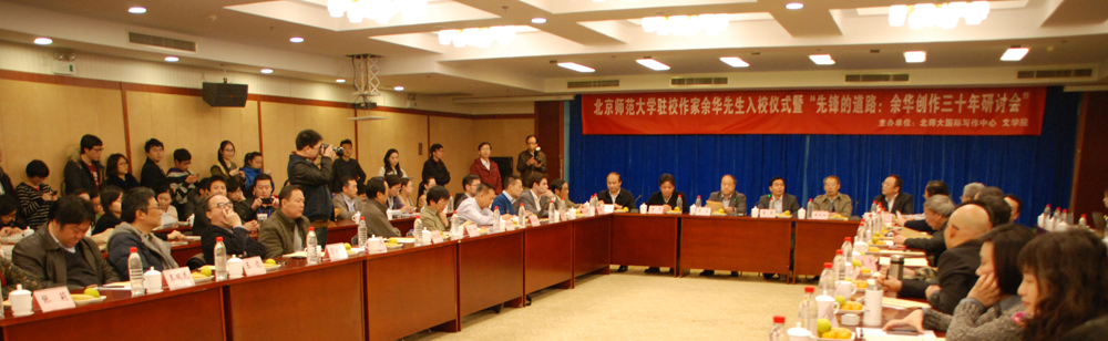 2014年3月14日,由91毛巾哥 国际写作中心和91毛巾哥 主办的91毛巾哥 驻校作家余华先生入校仪式暨“先锋的道路:余华创作三十年研讨会”在京师大厦第六会议室举行。