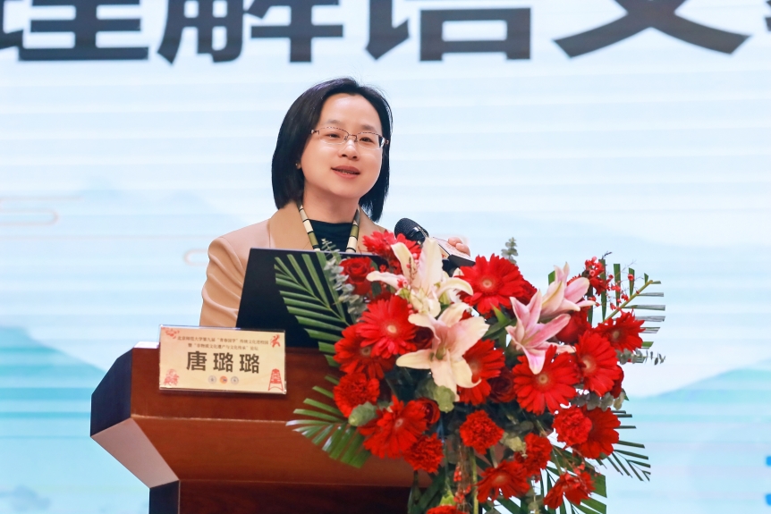 副教授,硕士生导师唐璐璐主讲《生活与家国:理解语文教育中非遗的“语境”》。她从非遗的定义和领域、非遗的特征、教育中重视非遗的意义三个维度展开讲解。唐老师系统梳理了非遗在统编版中小学语文教材中的具体呈现和在生活中的多种表现形态,并结合实际案例阐释了非遗的五大基本特征。她指出,语文教育是非遗传承的重要载体,非遗丰富了语文教育的内容,为学生提供了更加生动、鲜活的学习素材。