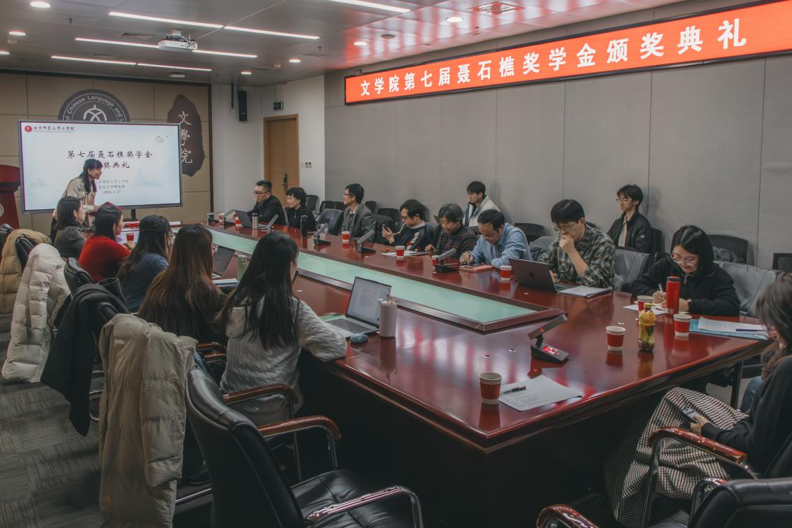 5049会议室举行。聂石樵奖学金执行人聂大昕老师,古代文学研究所马东瑶、李小龙、周剑之、谢琰、莎日娜、刘全志、颜子楠、吴沂澐、余丹、任刚、崔振鹏等老师出席,二十余位古代文学专业的硕士、博士研究生参加了此次颁奖仪式。仪式由中国古代文学所所长周剑之老师主持。