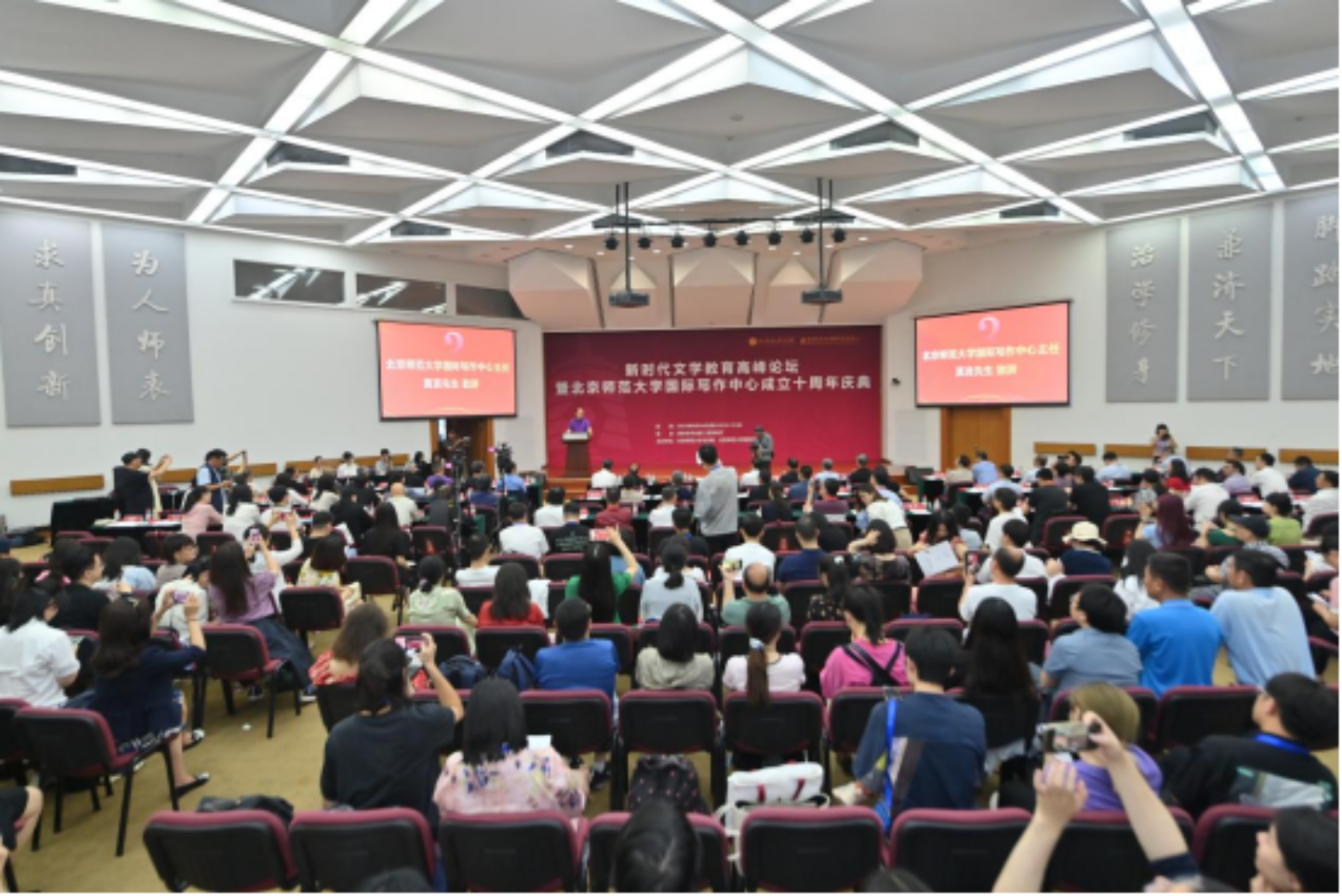 国际写作中心还举办了“通向写作之路——驻校作家与北师大师生面对面”、“新时代文学教育与写作能力培养”主题论坛及“青年写作能力的养成——文学创作方向研究生作品研讨会”等活动,与所有关心中国文学发展的新老朋友一道,从创作、批评、研究、传播等诸方面对十年来国际写作中心在文学教育等方面的成就加以研讨。此外,“国际写作中心成立十周年成果展”也于庆典前夕在京师学堂四层开展,展览对文学活动、作家新作、学生作品、学术成果、社会服务等方面详加梳理,细数文学与教育的过去、当下与未来。展览将持续至6月25日。