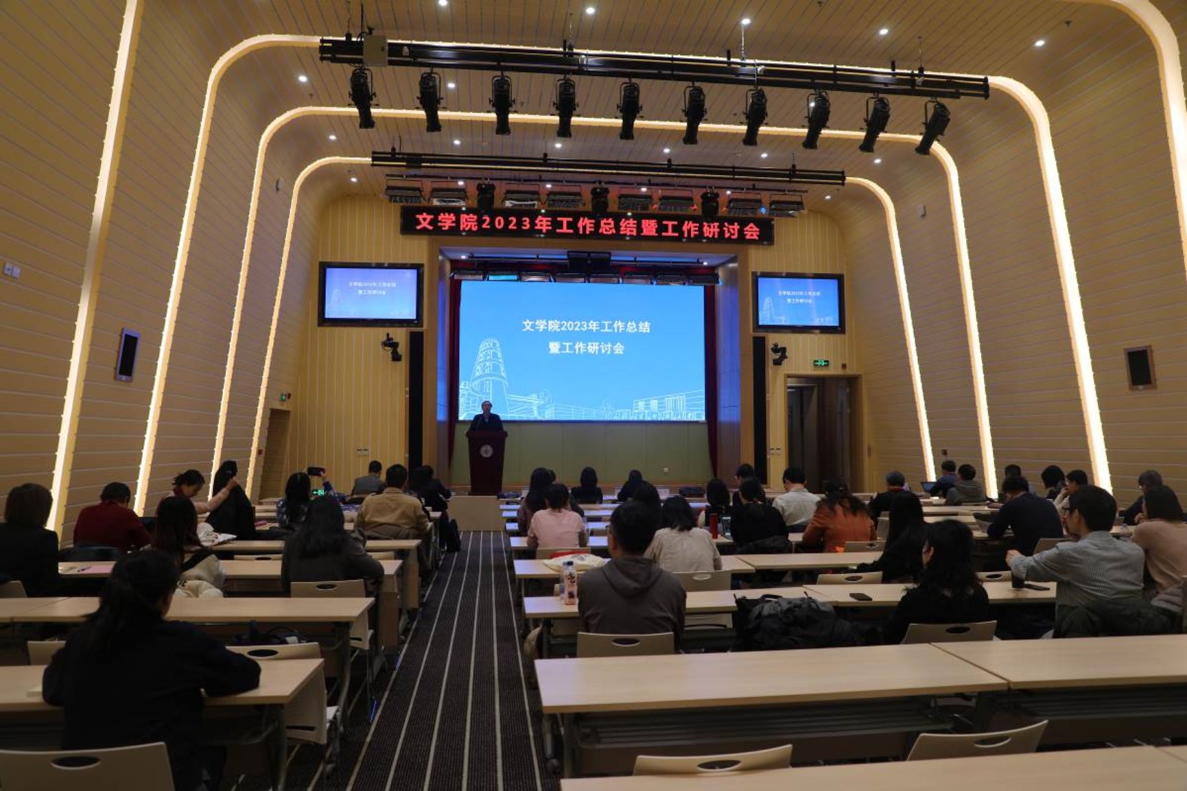 通过工作述职和各项主题发言,全体教师更加全面详细的了解学院过去一年工作开展的基本情况。经过充分研讨有效地促进交流,更凸显了人心凝聚、共谋发展的良好氛围。今后文学院还将积极搭建平台,建好机制,团结带领广大师生向学科建设与学院发展目标奋勇前行。