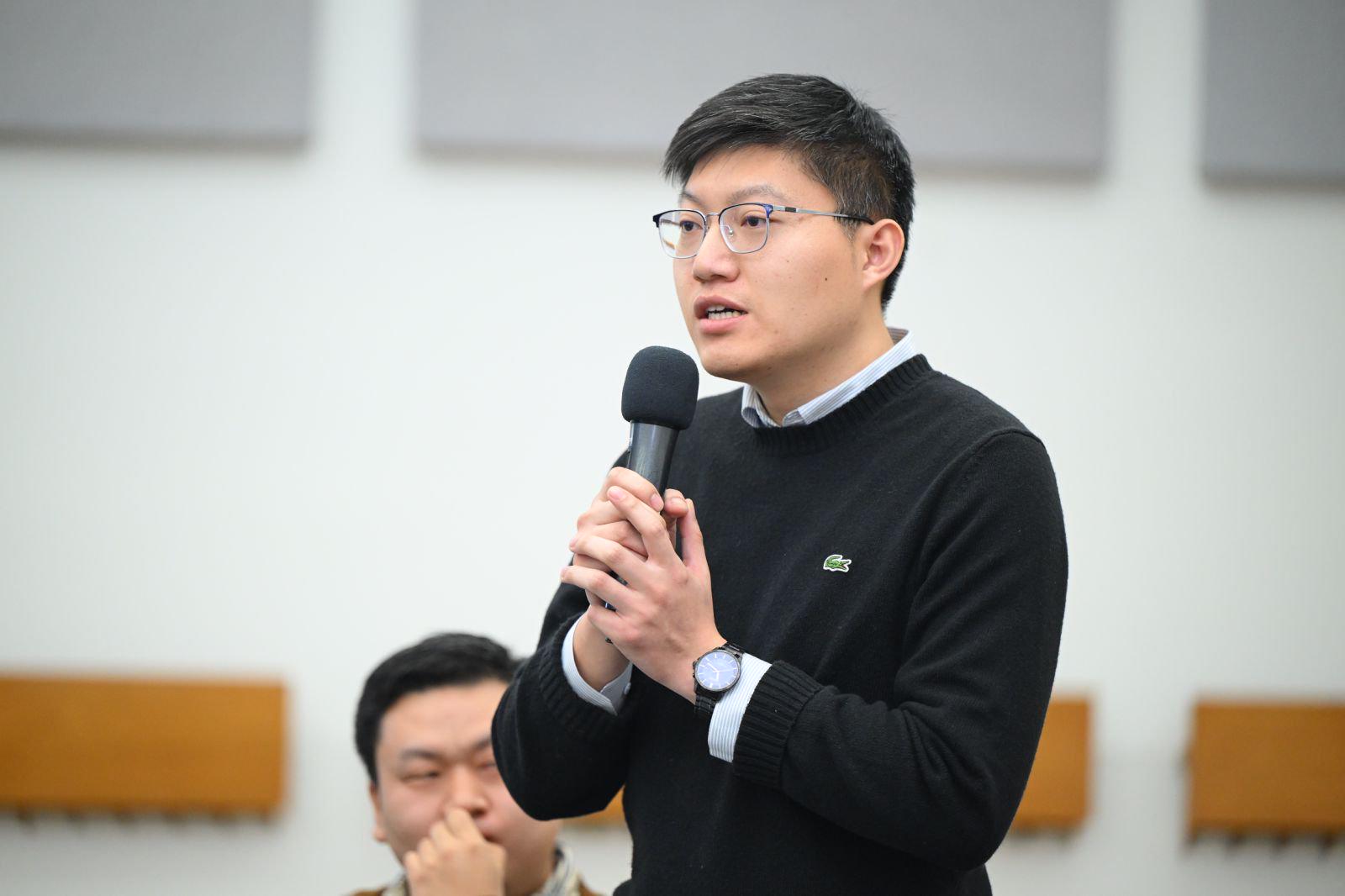 在新教师介绍环节,本年度新入职学院的胡韧奋、李聪、陶冉、崔振鹏四位教学科研教师及张攀、石萌欣、孙琳琳三位行政岗位教师做了精彩的自我介绍。
