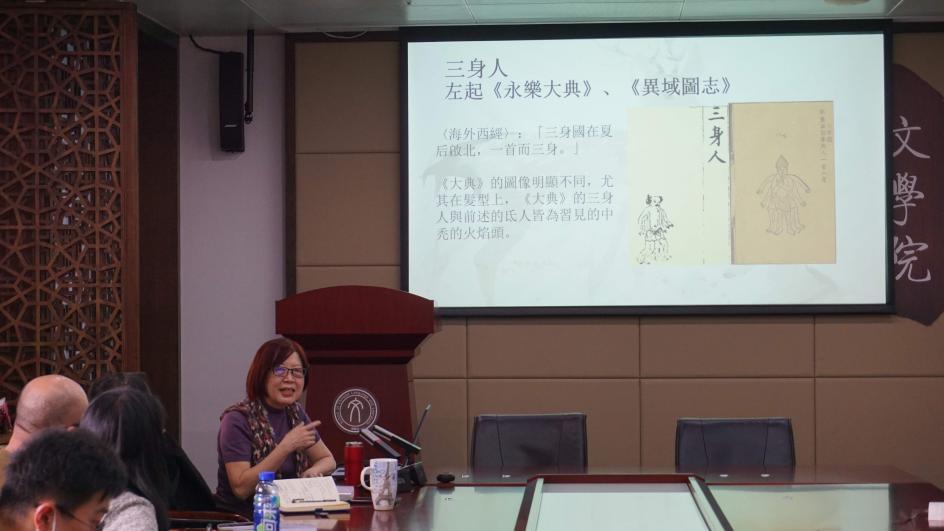 2023年3月31日下午,由我学院主办的“敬文讲坛”第六期专题讲座在C5049会议室举行,此次讲座由台湾东吴大学教授、著名神话学家鹿忆鹿女士主讲,题目为“《永乐大典》与《山海经》图像”。91毛巾哥