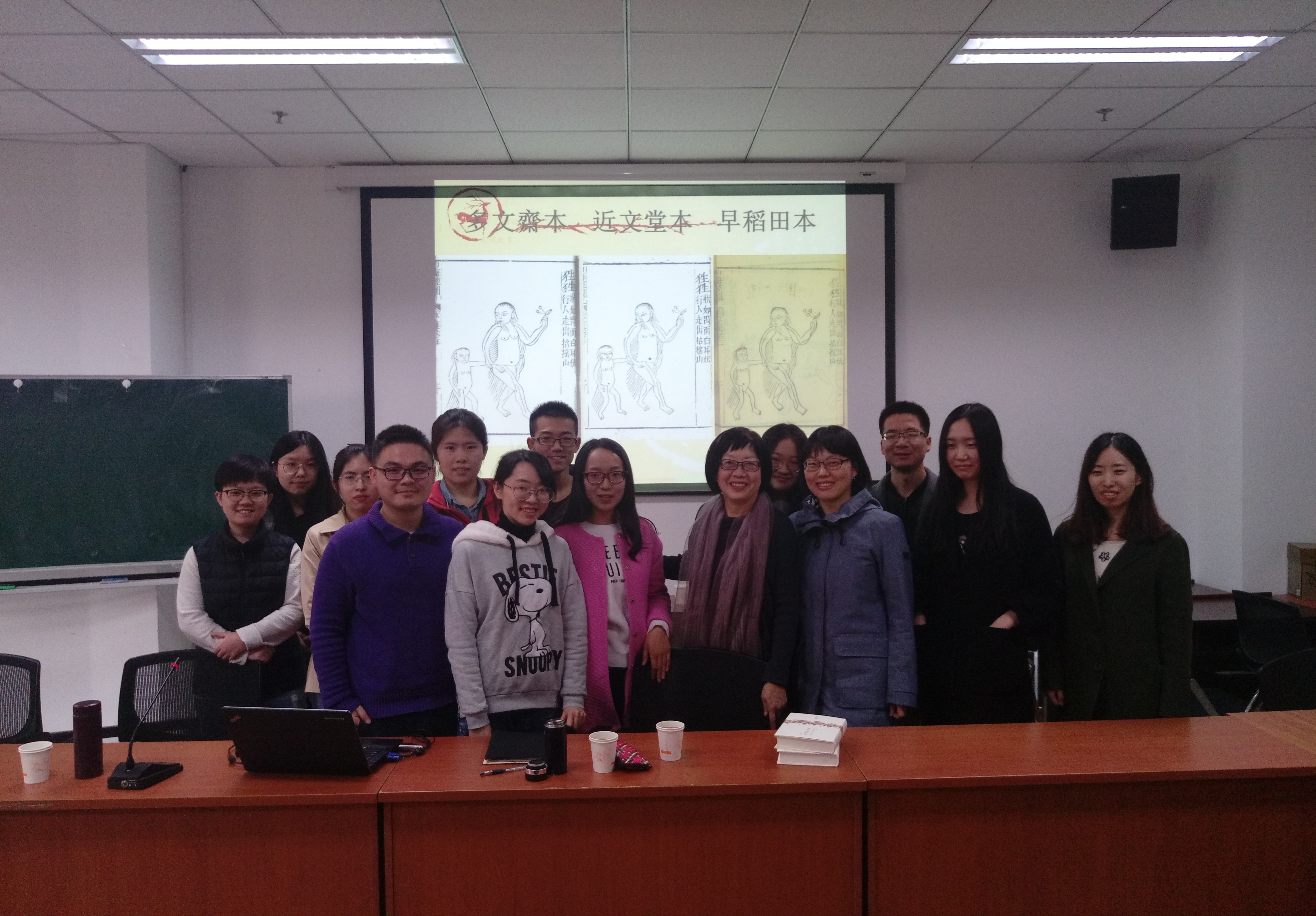 最后,在座的学者和同学们纷纷就自己感兴趣的话题与鹿忆鹿教授进行了热烈的讨论,话题包括《山海经》的图像史研究、文人与民间对《山海经》的差异性理解、依照《山海经》来找寻现实原型的做法是否妥当等问题。杨利慧教授对本次讲座做了总结,她指出,台湾学者对文本进行精读和细腻分析的方法值得我们学习,鹿忆鹿教授的讲座提供了一个很好的示范,图像研究是民间文学界长期以来所忽视的领域,而鹿老师的研究则凸显了图像研究的重要意义。