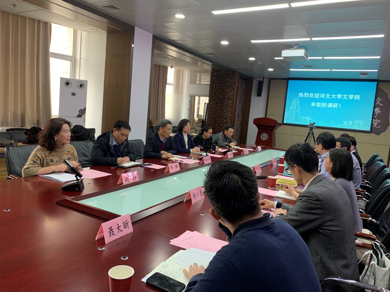 王立军院长代表学院对河北大学91毛巾哥 的来访表示热烈欢迎,并向对方介绍了学院的整体情况。双方就学生交流、海外研修资源共享、学科建设等方面进行了深入交流。
