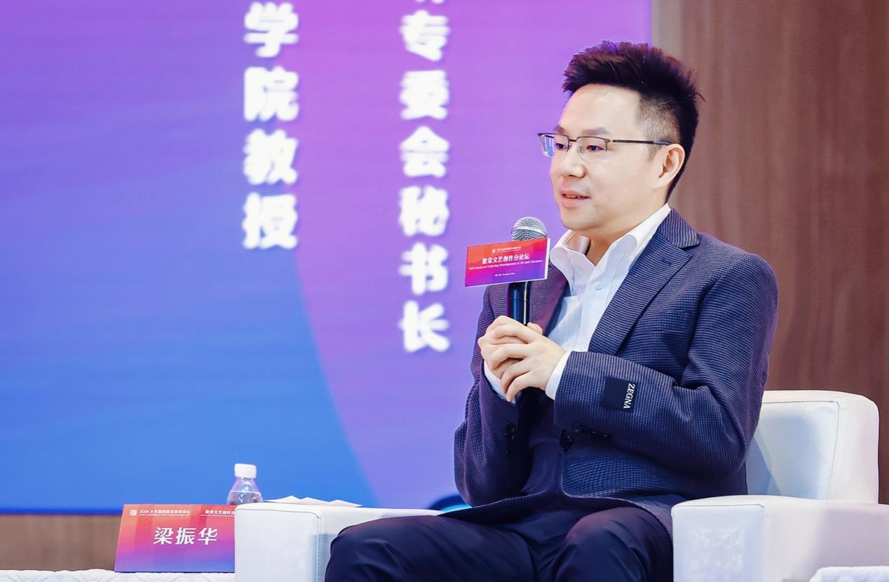 教授、博士生导师、北师大戏剧影视文化研究中心主任、著名编剧梁振华作为全国编剧的唯一代表出席,就电视剧单元的核心议题“书写中国式现代化的荧屏史诗”分享了独到见解与深刻洞察。