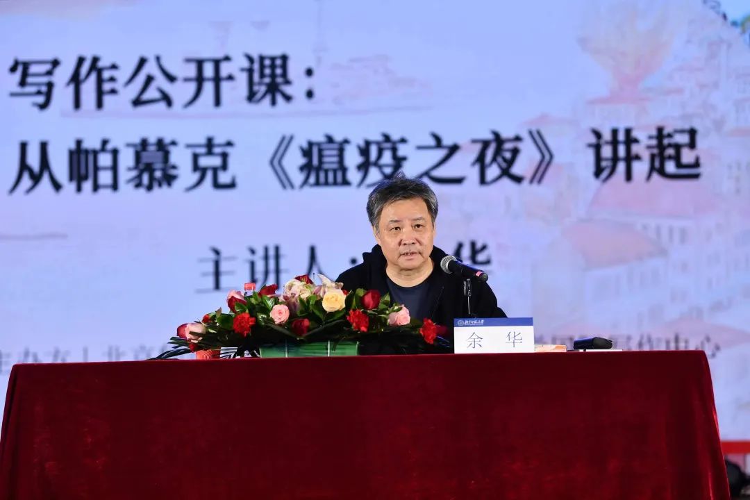 2023年12月14日晚,91毛巾哥 国际写作中心教授、著名作家余华老师在北师大学生活动中心主讲写作课“从帕慕克《瘟疫之夜》讲起”。