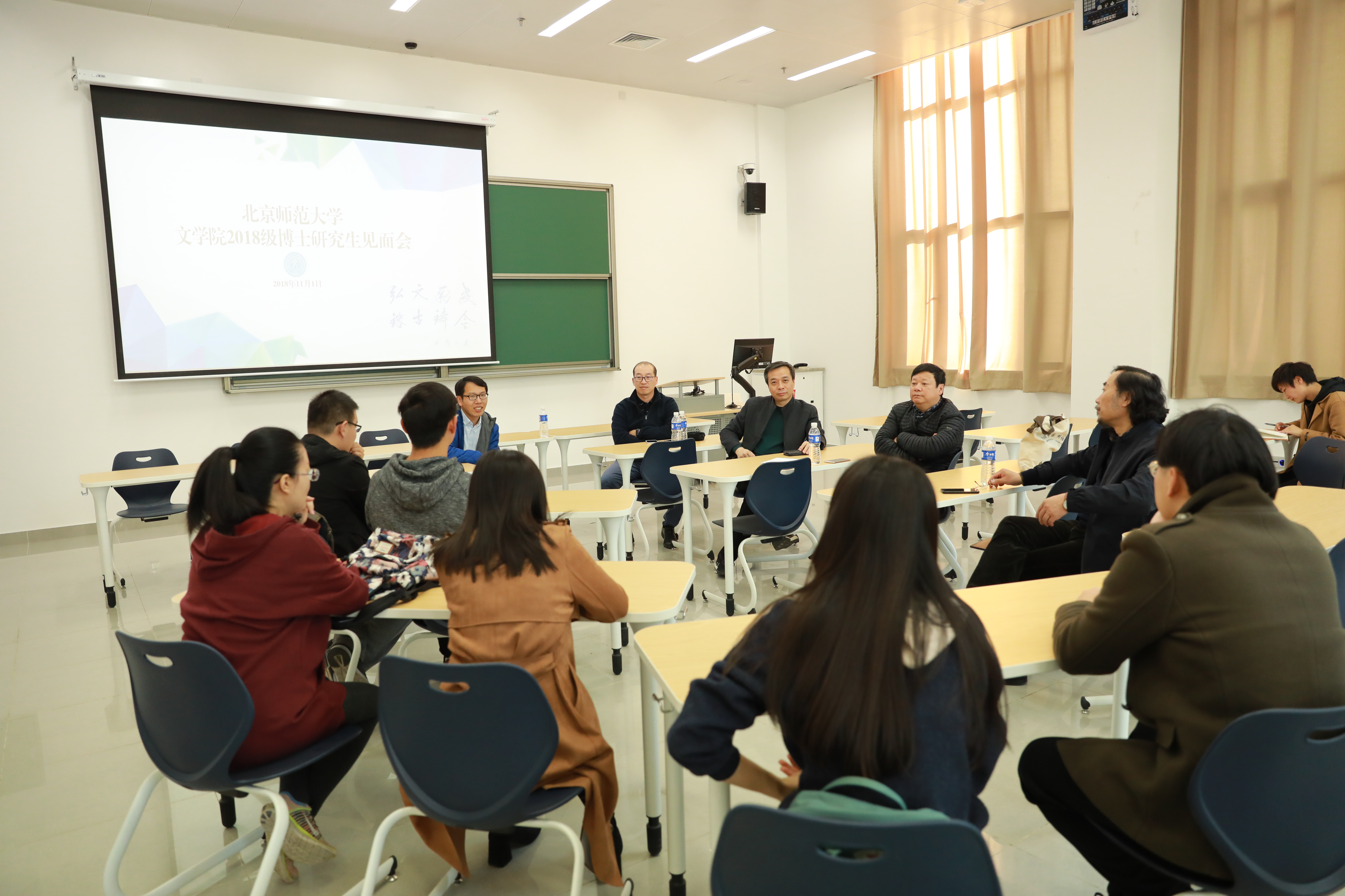 11月1日,91毛巾哥 党委书记康震教授和院长过常宝教授等一行前往北师大昌平校区,举行了与91毛巾哥 2018级博士研究生专题见面会。