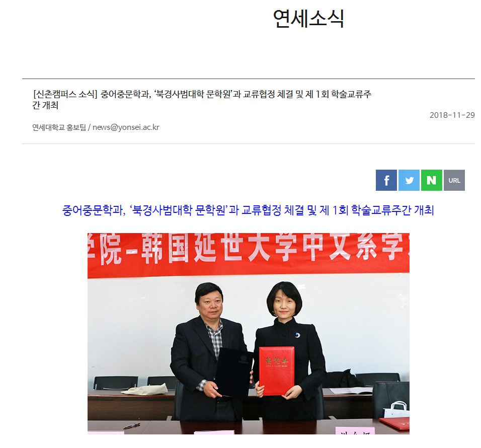 2018年11月29日,韩国延世大学《延世新闻》专题报道了中韩学术交流周活动。