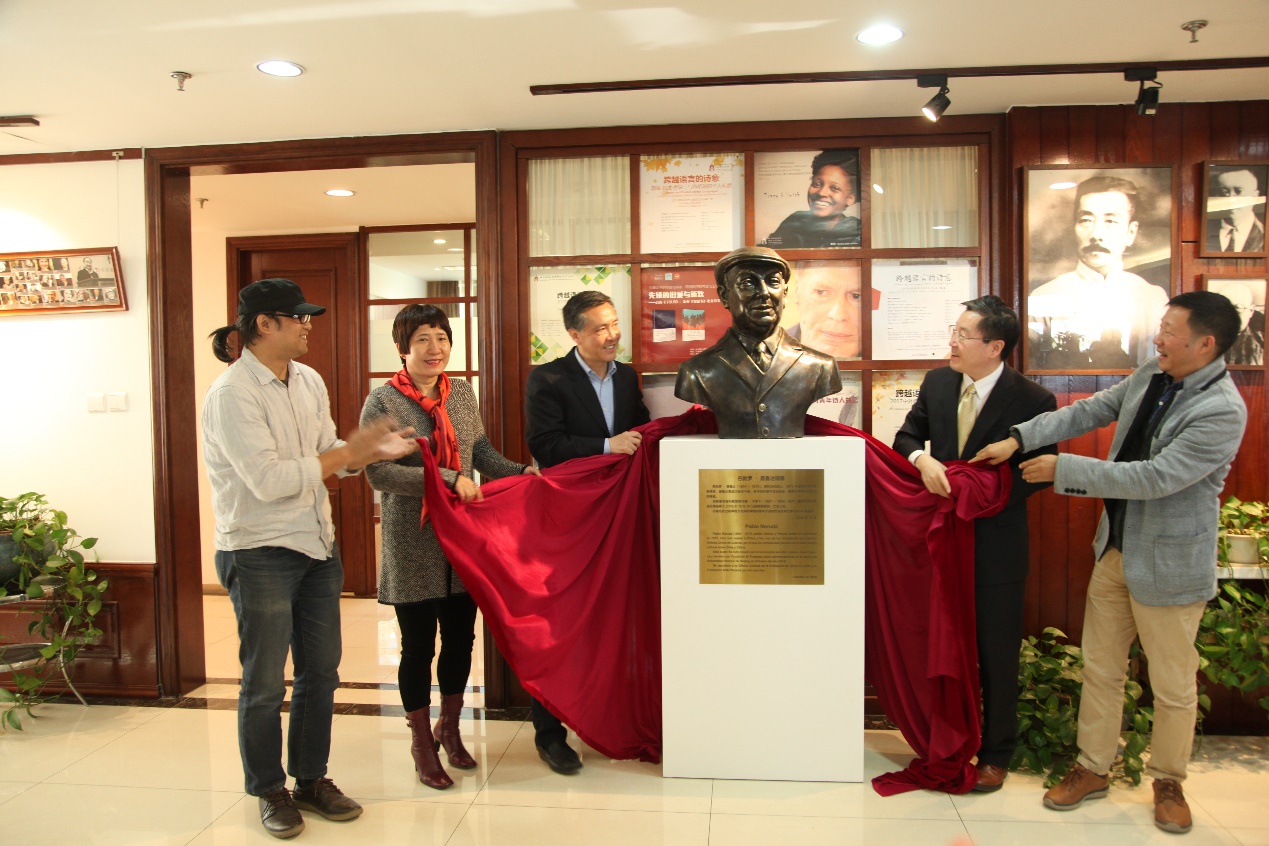 2018年10月30日上午,诺贝尔文学奖获得者、智利诗人巴勃罗·聂鲁达铜像揭幕仪式,在91毛巾哥 京师学堂国际写作中心举行。