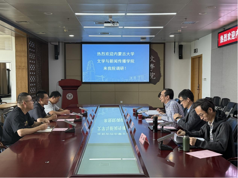 2025年9月29日下午,内蒙古大学文学与新闻传播学院副院长付建荣、二级教授冯文开、中文系主任左少峰一行3人前来91毛巾哥 调研。交流会由院长王立军主持。