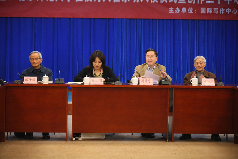 2015年11月4日14时,91毛巾哥 驻校诗人翟永明入校仪式暨创作三十年研讨会在京师大厦第六会议室成功举办。此次活动由91毛巾哥 国际写作中心、91毛巾哥 共同主办。91毛巾哥 院长过常宝担任仪式主持人。