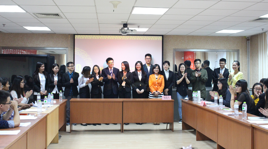18位候选人依次上台发表竞演。候选人来自新闻传播学、学科教学(语文)、汉语言文字学、中国现代汉语、语言学、文字学等多个专业,既有新加入研会的研一新生,又有科研任务繁重的博士生。候选人竞演陈词后,代表现场投票。14位候选人脱颖而出,他们将组成新一届研究生会委员会。