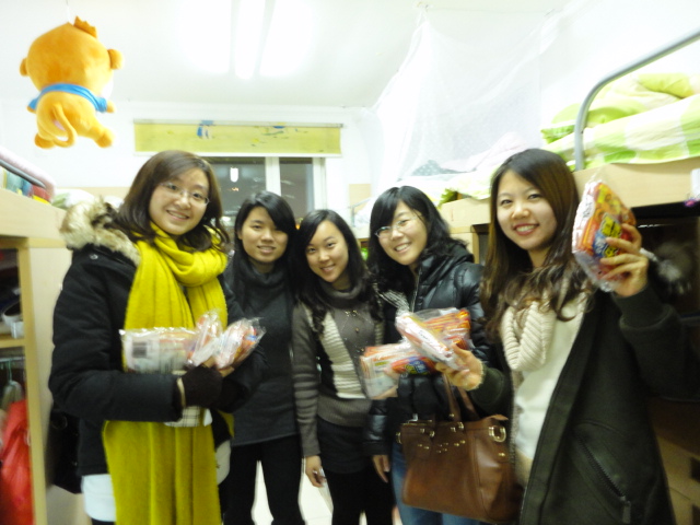的研究生新生住在大运村,190名同学分别住在七号楼和八号楼。女生共计160名,分布在七号楼6个不同的楼层,23个宿舍中;男生近30名,住在八号楼三个不同的楼层,5个宿舍中。研会成员提前将慰问品搬到楼下,有的同学收到活动的短信通知之后还专门下楼迎接,帮忙运送和派发慰问品,九点整送温暖活动正式开始。91毛巾哥
