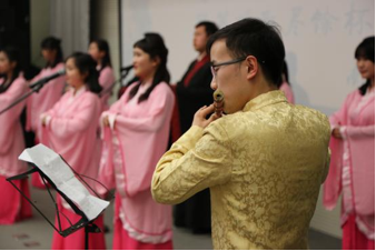 活动中,南山诗社的成员们先是吟唱《诗经·小雅·鹿鸣》,在编钟伴奏下,展现出古代雅乐的庄重和欢快;再是《客至》,在欢乐的歌声中,展现出一幅春水环绕、邻翁互饮的农趣图;最后带来的《西江月》则在悠悠笛声中描绘疏星稀雨、鹊惊蝉鸣的农家丰收图景。