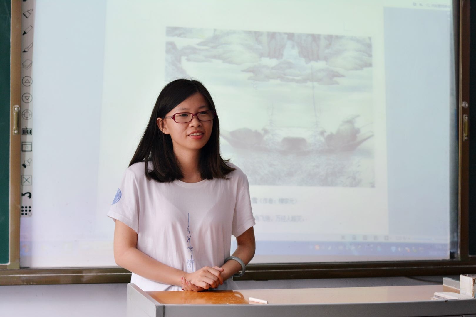 聂阳欣代表北师大全体支教成员进行了发言,介绍了支教与调研活动的基本情况,并宣誓本次支教活动会恪守师大人“学为人师,行为世范”的准则,给桥上乡中学师生带来不一样的体验。