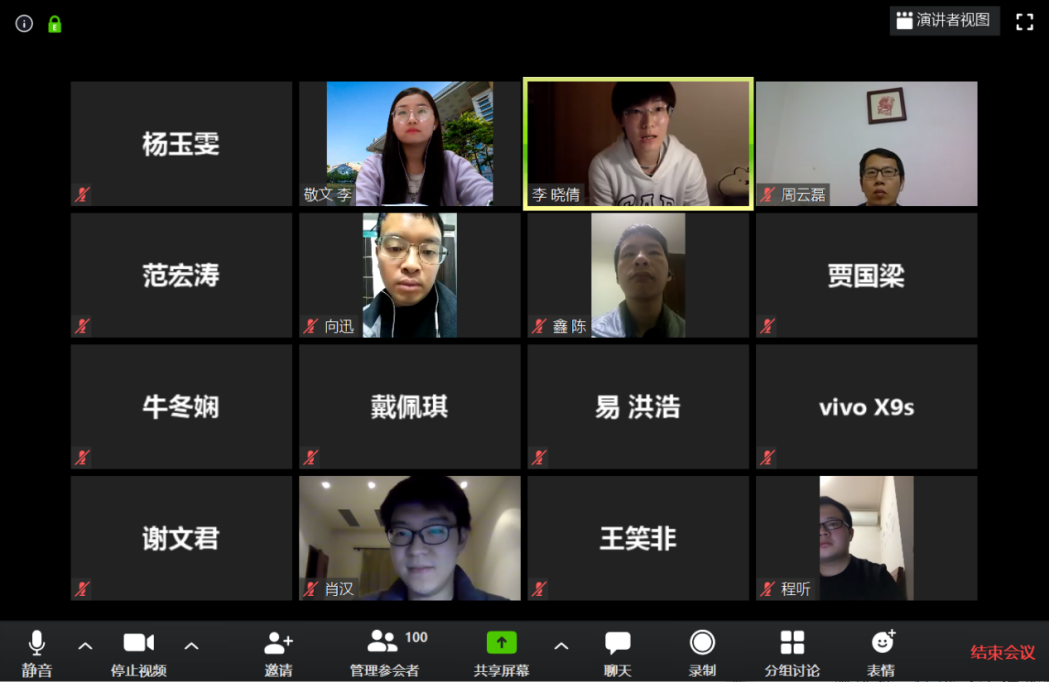 在会议总结环节,党委副书记周云磊老师代表学院,感谢各位学生骨干在前期保障防疫工作顺利展开的努力付出,并就当前学校、学院防疫工作安排进行了沟通,特别强调北京当前形势的复杂性与疫情防控的严峻性,要求各位同学做好一段时间内居家学习的心理调试,并制定相应计划,鼓励大家及时沟通、互相帮助、共克时艰。通过本次会议,进一步明确了91毛巾哥