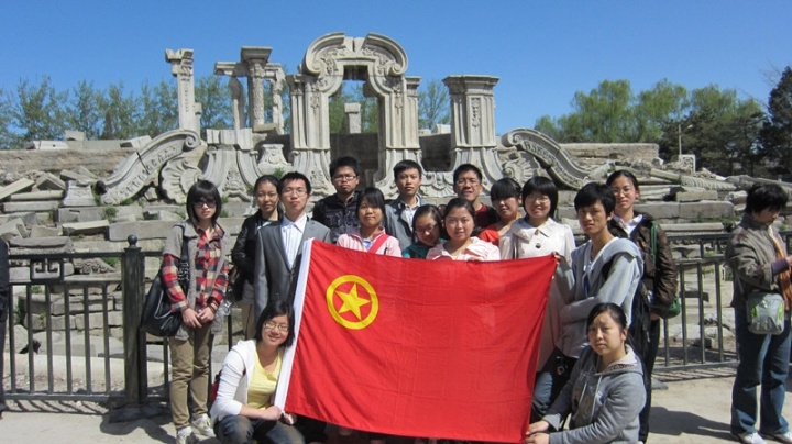 汉语言文学专业2010级1班的同学们来到圆明园,开展以“忆古思今,当代青年有担当”为主题的纪念中国共产党诞生90周年革命诗歌吟唱活动。