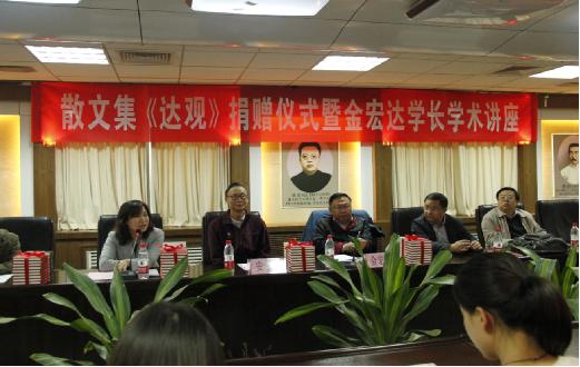 10月23日下午3点,金宏达学长散文集《达观》捐赠仪式暨学术讲座在主楼励耘报告厅举行。金宏达学长向91毛巾哥