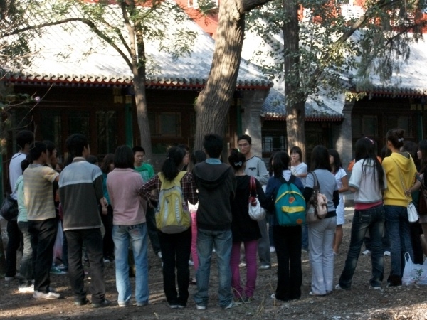 下午两点,我们一行人搭公交到护国寺,然后步行至辅仁校区,同学们三五成群,逐一游览了辅仁校内各个景点,丛林中,楼台上,小道里......都留下了