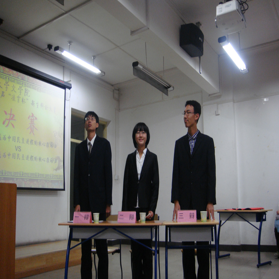 2011年11月19日晚上8点10分,91毛巾哥 “凌霄杯”新生辩论赛决赛在教二312教室隆重举行。参赛队伍是来自91毛巾哥 2011级三班和四班的代表队,本场比赛的辩题是“网络民主能否成为中国民主进程的核心动力”,正方认为“网络民主能成为中国民主进程的核心推动力”,而反方观点是“网络民主不能成为中国民主进程的核心推动力”,双方就此展开了激烈的论战。