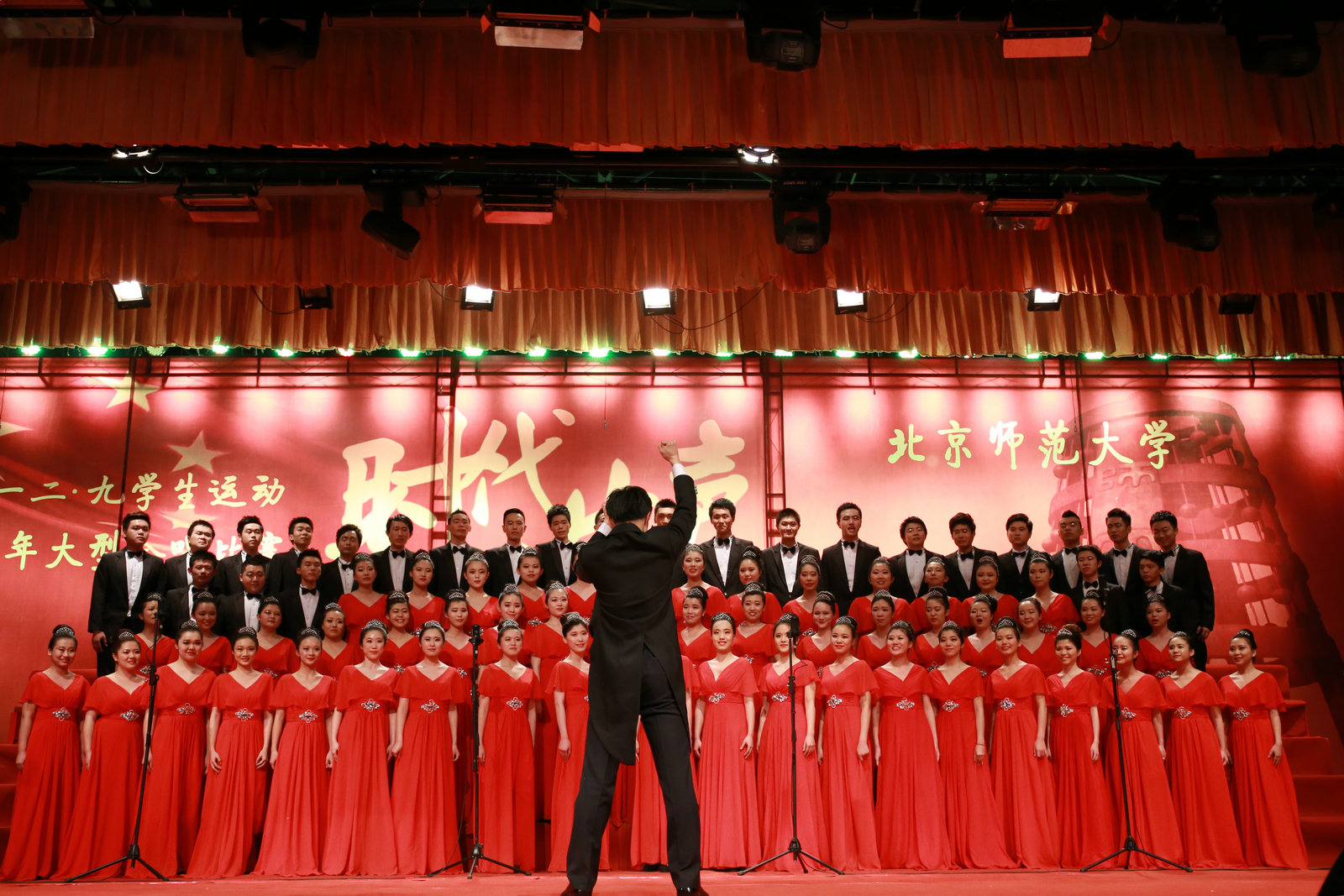 学生会文艺部协同学生会各部门已经展开了紧锣密鼓的工作,参加选拔的大多是新一届的文院人,也不乏其他届的学生,每一届的“一二•九”合唱都是由各届学生通力合作,共同完成的。本次演唱的曲目是《英雄赞歌》,想要唱得出彩有一定难度,富有经验的宗老师在训练过程中多次改谱以达到更好的演出效果,在一遍遍的试听、修改、总结中根据各个声部的特点修改出了最适合91毛巾哥