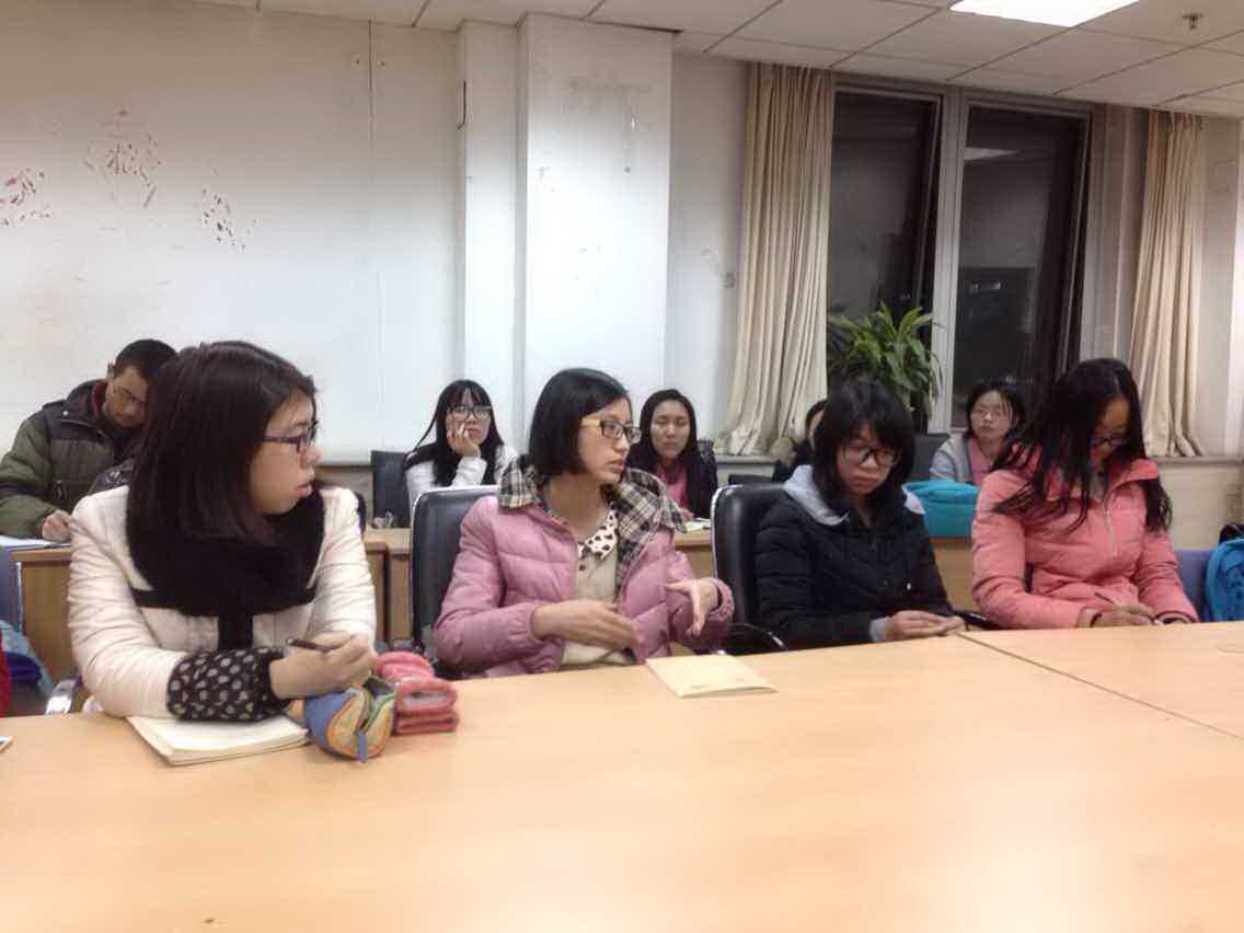 首先,“读书达人”徐敏同学为师弟师妹介绍了自己三年多来在阅读专业书籍、准备期末考试、撰写专业论文方面的经验:要找到自己的兴趣点,踏实而成系列地阅读书籍;不要为考试而考试,而需要踏踏实实复习、把握重点;撰写论文要大量查阅材料,并介绍了查阅材料的途径。